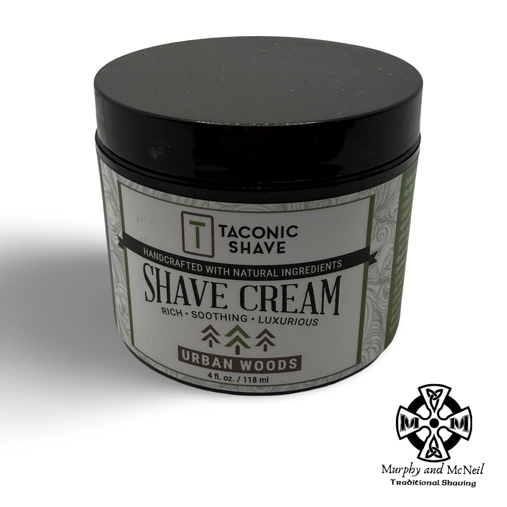 Taconic Shave’s Urban Woods Shave Cream creates a lather that is rich, slick, luxurious and extremely long lasting. This product uses many organic ingredients and is made in the USA by our artisan soap makers. Our cream can be used with a brush (recommended) or brushless. Either will deliver a fabulous shave. Highly concentrated, one container will last for several months.