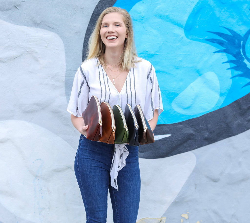 Our beautifully crafted women's cosmetic toiletry bag is made with authentic full grain leather and designed with plenty of space for all your essentials.