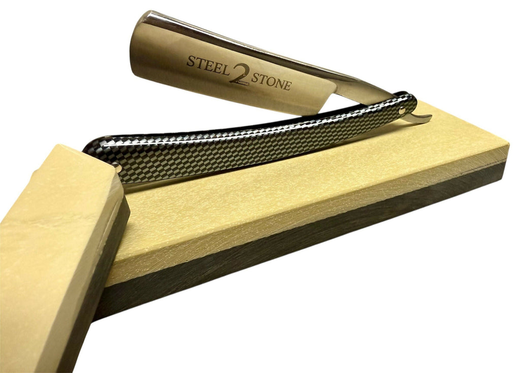 Looking to get into straight razors. Want a true and trusted shave ready edge. The “Steel 2 Stone” Gold Dollar 208 razor model is 6/8 in size (spine to edge) round point with a full hollow grind. Pins are tight and razor centers nicely. Aluminum travel case with velvet sleeve is included with the razor.