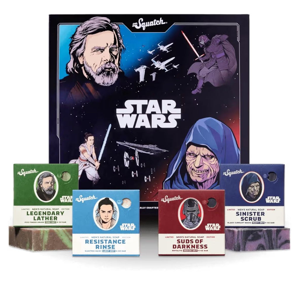 - INSPIRED BY Star Wars - Experience the finest soaps in the galaxy with our out-of-this-world Star Wars -inspired 4-pack of cold process natural bar soaps. Features soaps inspired by legendary Star WarsTM characters on the light and dark sides.