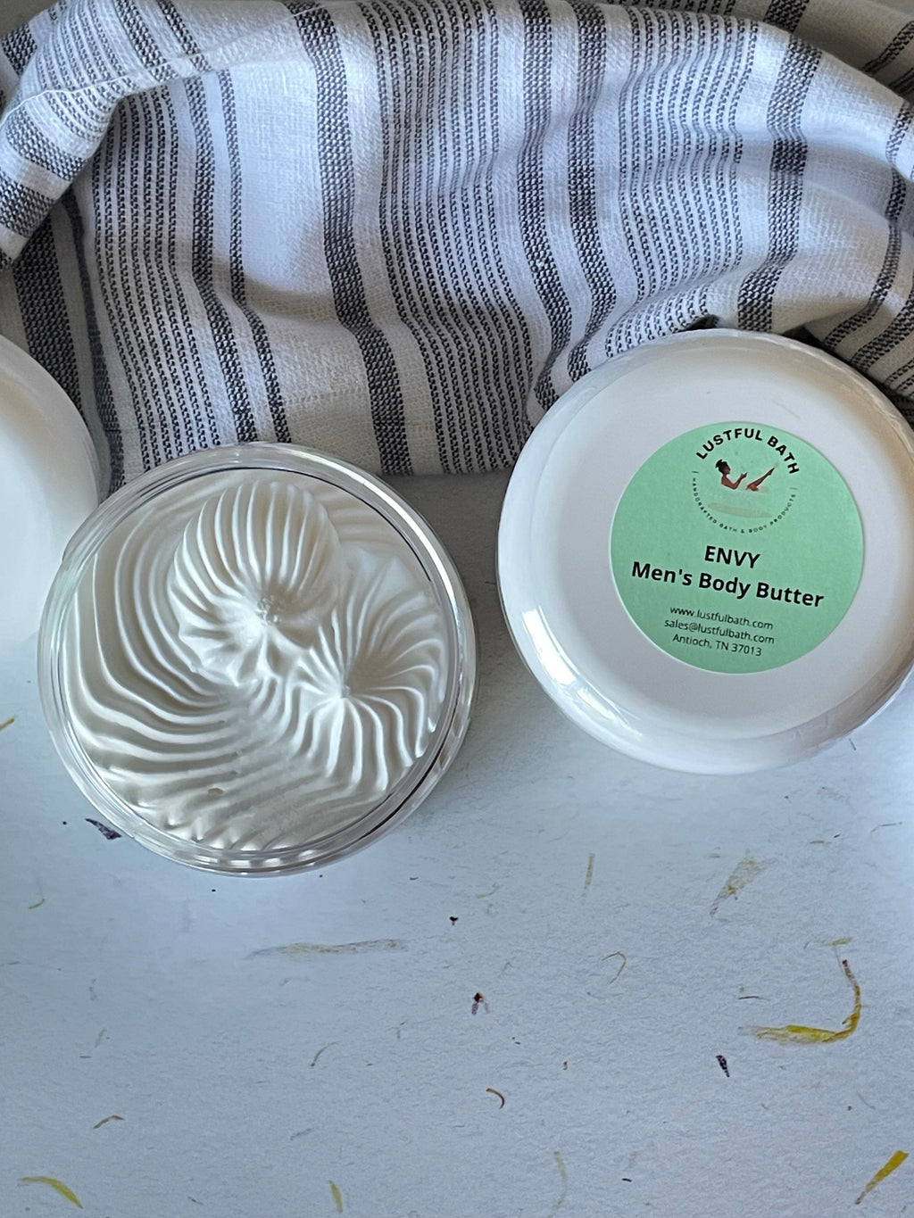 This body butter is crafted for today's man. It's a tantalizing blend with notes of bergamot, vanilla and nutmeg and the perfect choice for the scent-savvy. Shea butter and avocado butter are whipped together to create a nourishing, rich texture that moisturizes and hydrates.