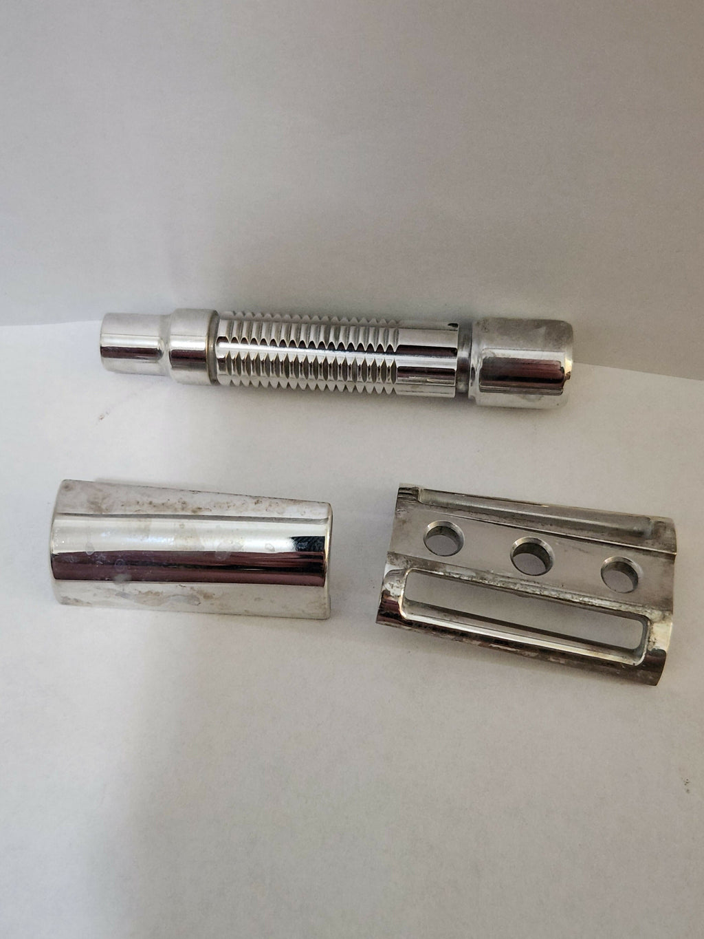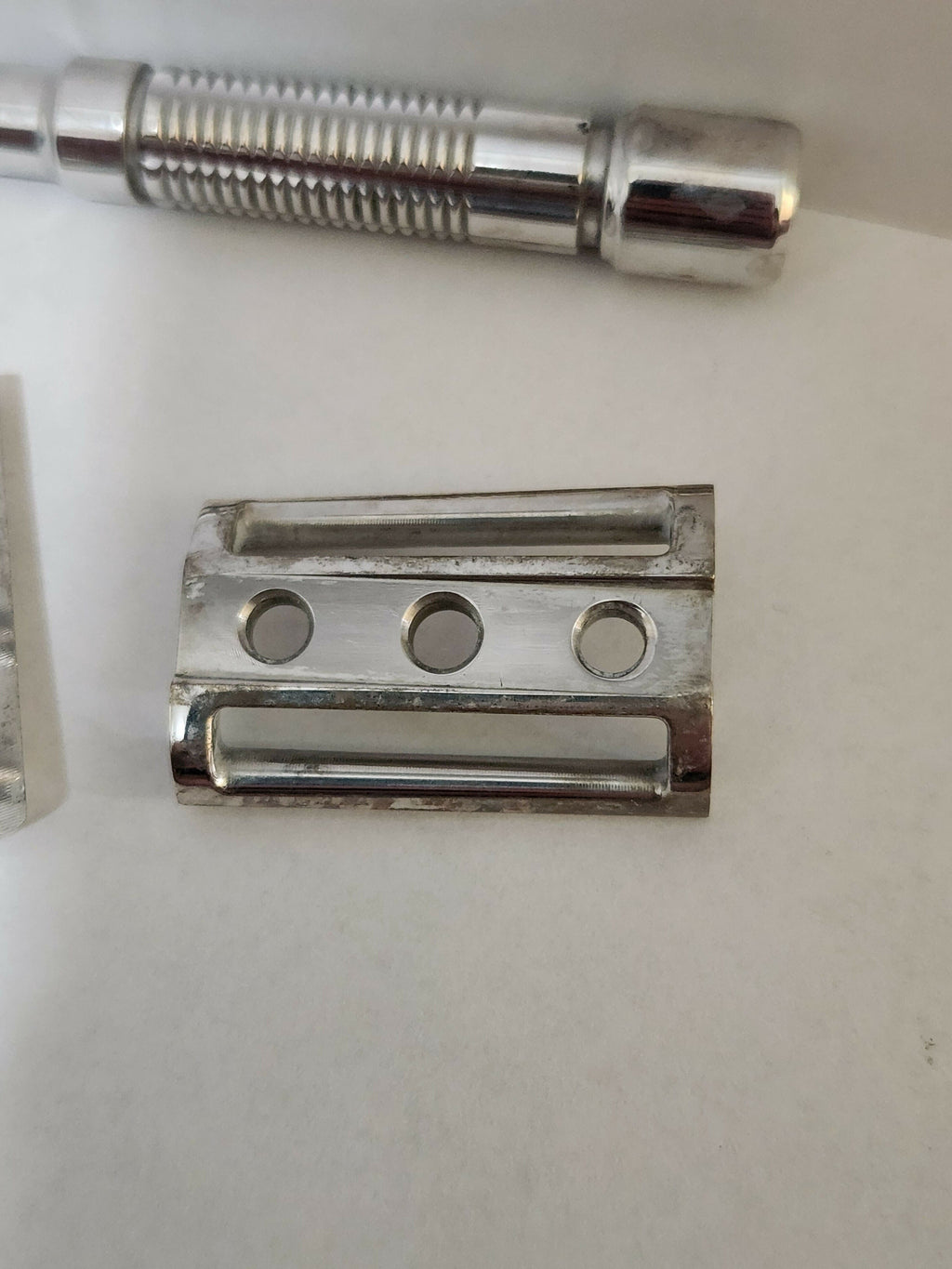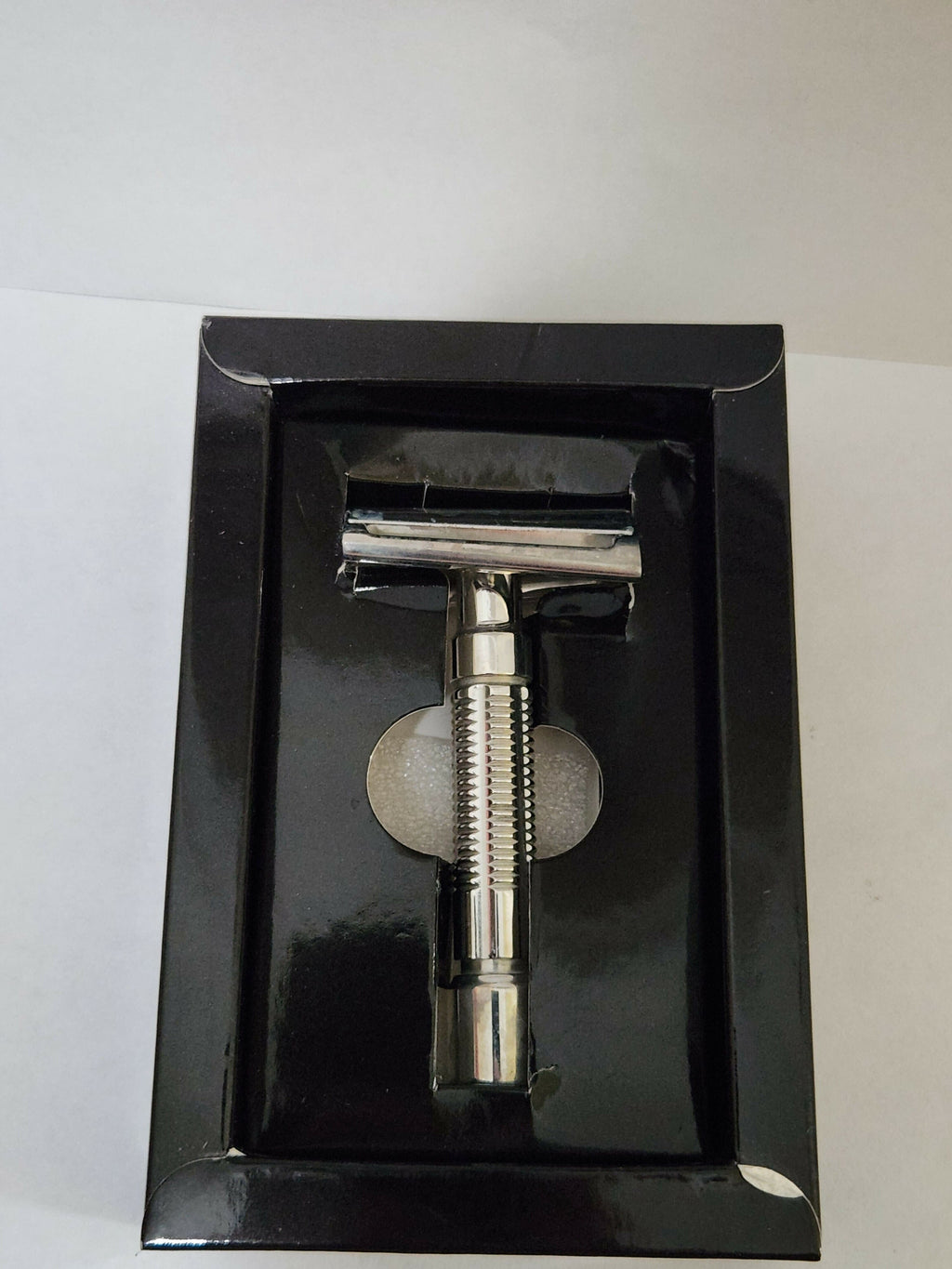 Fine Accoutrements Aluminium Double Edge Slant Safety razor. I have owned this for about 5-6 years, and it does have some wear on it, but nothing that would affect the shave. Comes with original box and weighs around 32grams. Very rare and long out of production