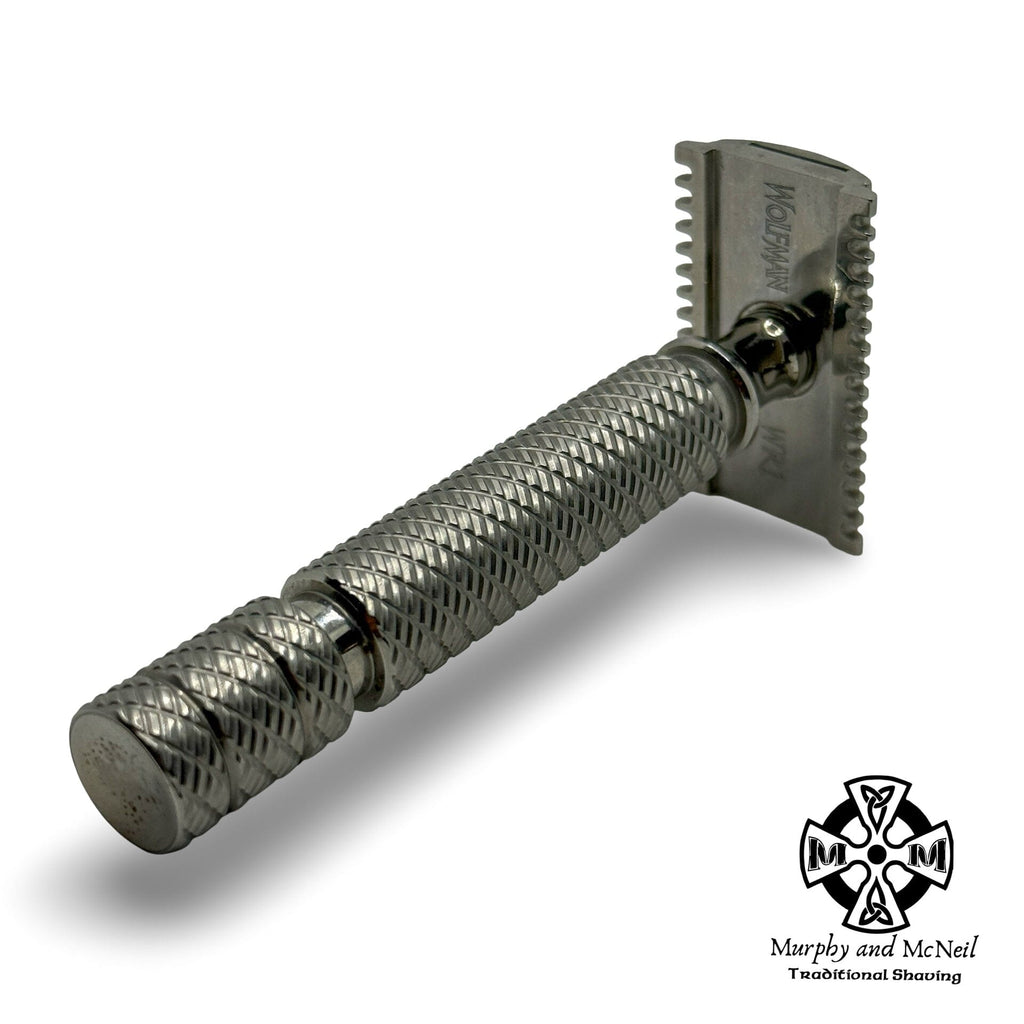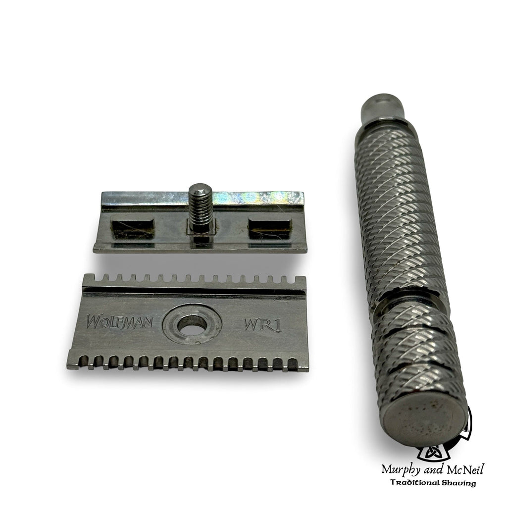 This premium shaving set from Wolfman features the WR1 open-comb razor head in 316L stainless steel, matched with their WR2 handle and the WRA1 razor stand. The razor is finished with superb machining, hand polishing, and the open-comb head ensures excellent performance with both lather retention and close shave capability. The WR2 handle offers a strong ergonomic grip, and the WRA1 stand elevates the set to display quality. A true enthusiast’s piece — ideal for collectors or those who demand top-tier performance and finish.